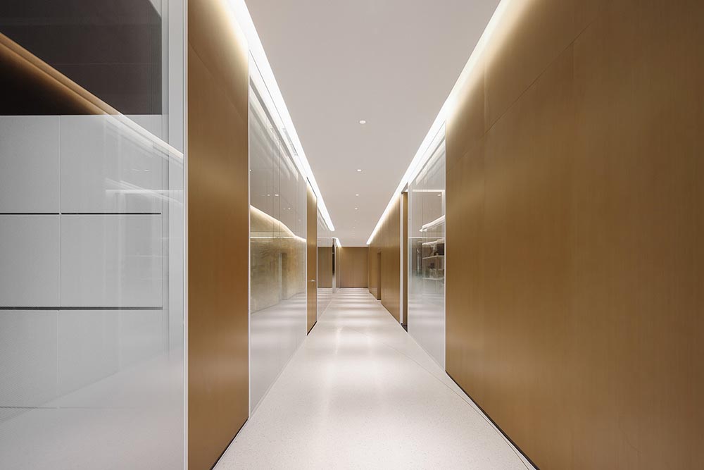 人们顺着以动线为主体设计的走廊,可以非常轻松地到达办公室的任何一个区域。这种方式最大程度满足了场地的利用率,减少人们不必要的时间消耗,提升人与人之间的沟通效率。