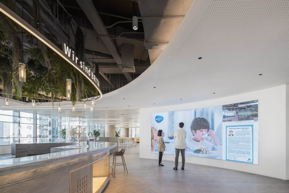 经典滤水产品无缝地嵌入吧台之中,员工得以在咖啡的醇香中开启美好的一天。夜幕降临时,临窗的多功能区还可以变身为网络直播间。
