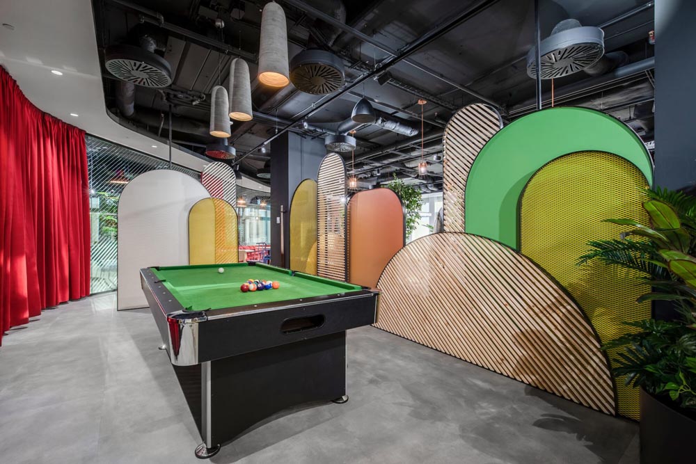 印花地毯、专属定制的办公家具、墙面装饰和照明设备等,将他们深入人心的游戏角色和场景融入到工作生活中,以此为核心打造强大的个性文化属性的整体企业形象。