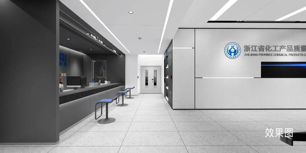 本案以简约、现代的室内设计改变了检测机构固有形象。场地分为公共接待区、工作区、实验区,强调功能区块划分以提高办公效率,实现如何最大限度地利用可用空间。